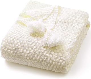 [NARU] ブランケット 毛布 ひざ掛け ハーフケット 北欧 フリンジデザイン 大判 おしゃれ かわいい 防寒 冷房対策 通年使用 オールシーズン 洗える プレゼント ギフト (ホワイト, Mサイズ(110×150cm))