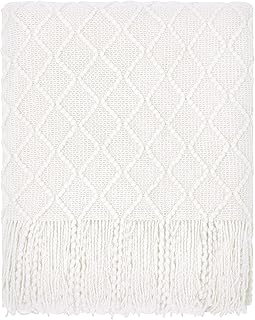 BEDELITE 毛布 ニット ブランケット 大判 北欧 掛け毛布 着るブランケット 着る毛布 防寒 おしゃれ ひざ掛け マフラー 大判 レディース スカーフ ストール ショール 大判 肩掛け フリンジ付き プレゼント ソファー オフィス ハーフケット ホワイト